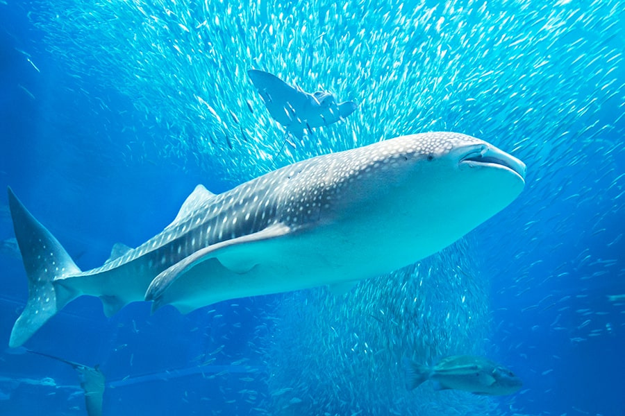 - 고래상어 전시: 가이유칸의 하이라이트는 세계 최대의 고래상어가 유영하는 거대한 수조입니다. 관람객은 대형 수조를 둘러싼 나선형 통로를 따라 걸으며 고래상어와 다양한 해양 생물을 가까이에서 볼 수 있습니다.