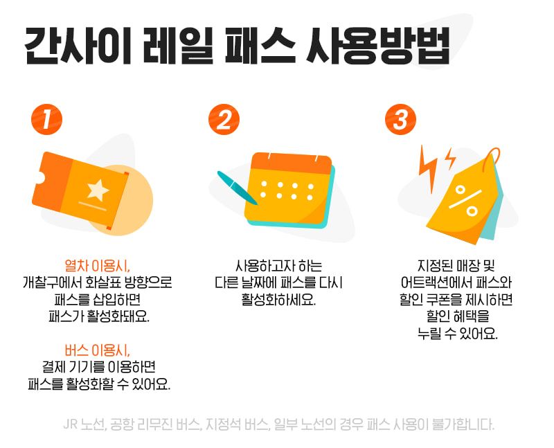 - 특급 열차 예약: 패스 소지자는 하루카 등 특급 열차의 자유석을 추가 비용 없이 이용 가능