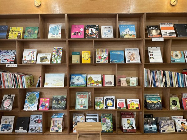 카페 내부는 화이트와 우드톤의 인테리어로 꾸며져 아늑하고 따뜻한 분위기를 자아냅니다. 천장까지 이어지는 책장에는 신간부터 고전까지 다양한 그림책이 작가별, 출판사별로 정리되어 있어 원하는 책을 쉽게 찾을 수 있습니다. 특히, 아이들을 위한 색칠놀이 도구와 편안한 좌석이 마련되어 있어 가족 단위 방문객들에게 최적의 장소입니다.
