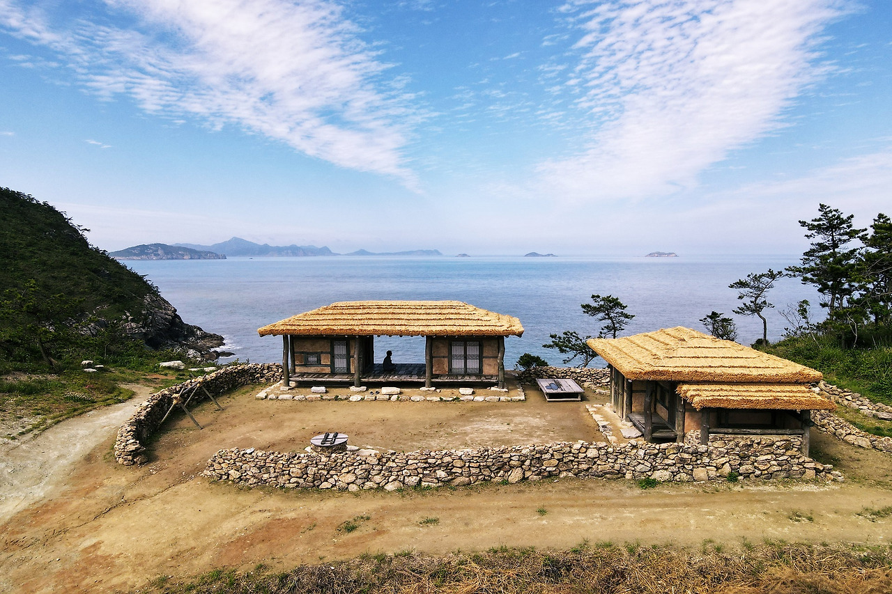 팽나무 십리길 끝자락에서 이어지는 자산어보 촬영지는 도초도에서 가장 전망이 좋은 곳 중 하나입니다. 탁 트인 서해 바다를 배경으로 세워진 초가집 마루에 앉아 있으면, 일상의 스트레스가 씻겨 나가는 기분을 느낄 수 있습니다. 정약전(설경구 분)과 창대(변요한 분)가 나누던 대화가 귓가에 들리는 듯한 고즈넉한 분위기를 자아냅니다.