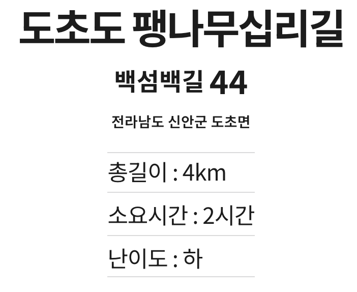 - 코스 명칭: 도초도 팽나무 십리길 (환상의 정원)