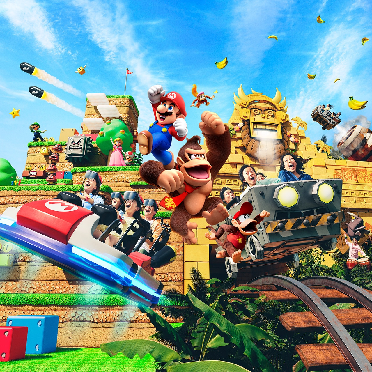 - 슈퍼 마리오 카트: 게임 속 마리오 카트를 현실에서 체험할 수 있는 놀이기구.