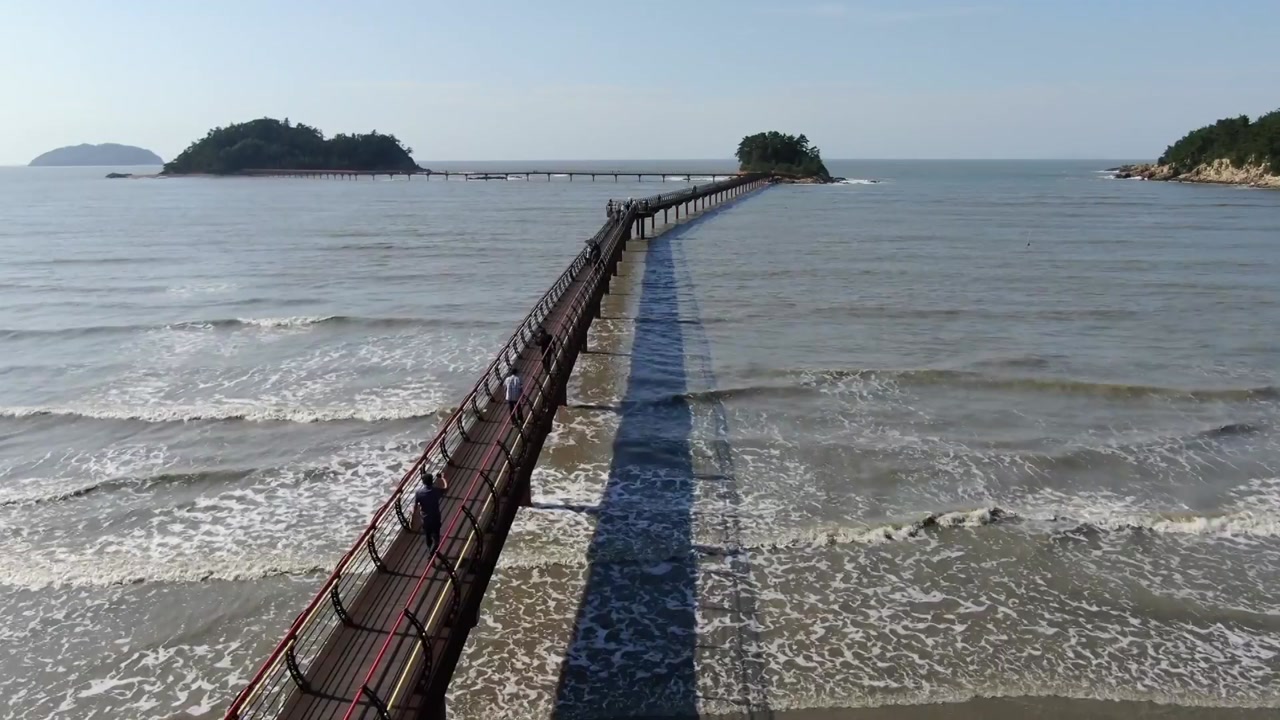 자은도 하면 가장 먼저 떠오르는 곳이 바로 무한의 다리입니다. 둔장해변에서 구리도, 고도, 할미도를 잇는 $1,004m$ 길이의 보행교죠.