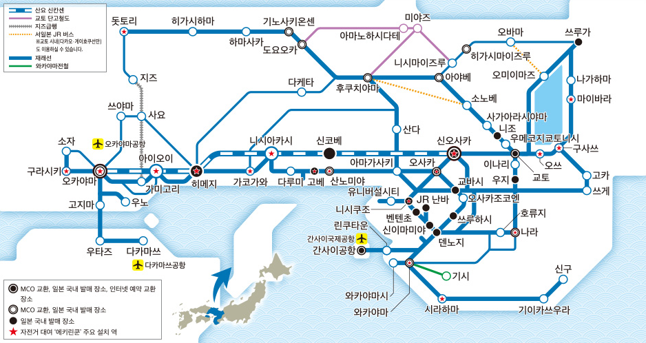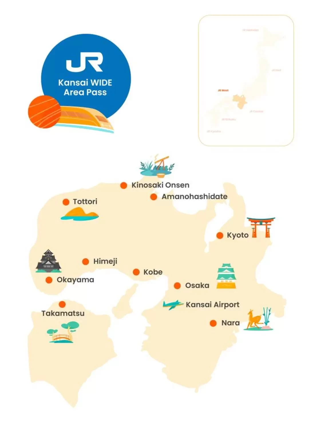 • 이용 가능 구간: 오사카, 교토, 고베, 나라, 와카야마 등 간사이 지역뿐만 아니라 오카야마, 구라시키, 시라하마, 기노사키 온천, 다카마쓰 등도 포함됩니다.